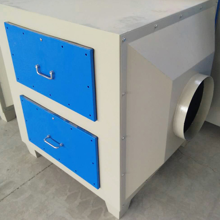 - 活性炭吸附装置 活性炭净化箱 活性炭吸附箱原理: 当废气由风机提供动力,负压进入吸附箱后进入活性炭吸附层,由于活性炭吸附剂表面上存在着未平衡和未饱和的分子引力或化学键力,因此当活性炭吸附剂的表......