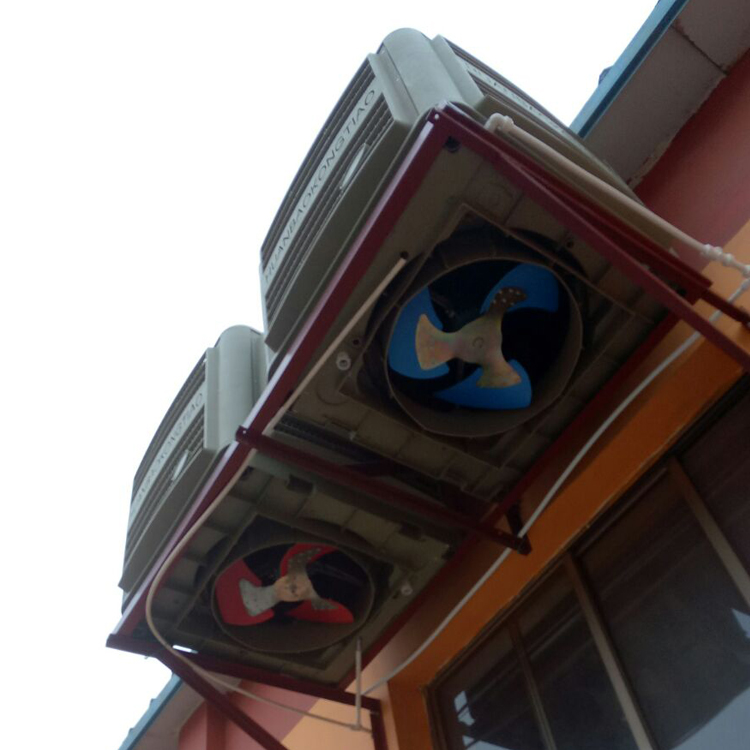 湿帘冷风机可安装在墙壁上,屋顶上或室外的地坪上,应避免风管过长(如KS-18型)。一般长度15-20米佳,并尽可能减少风管弯头或不用弯头。
